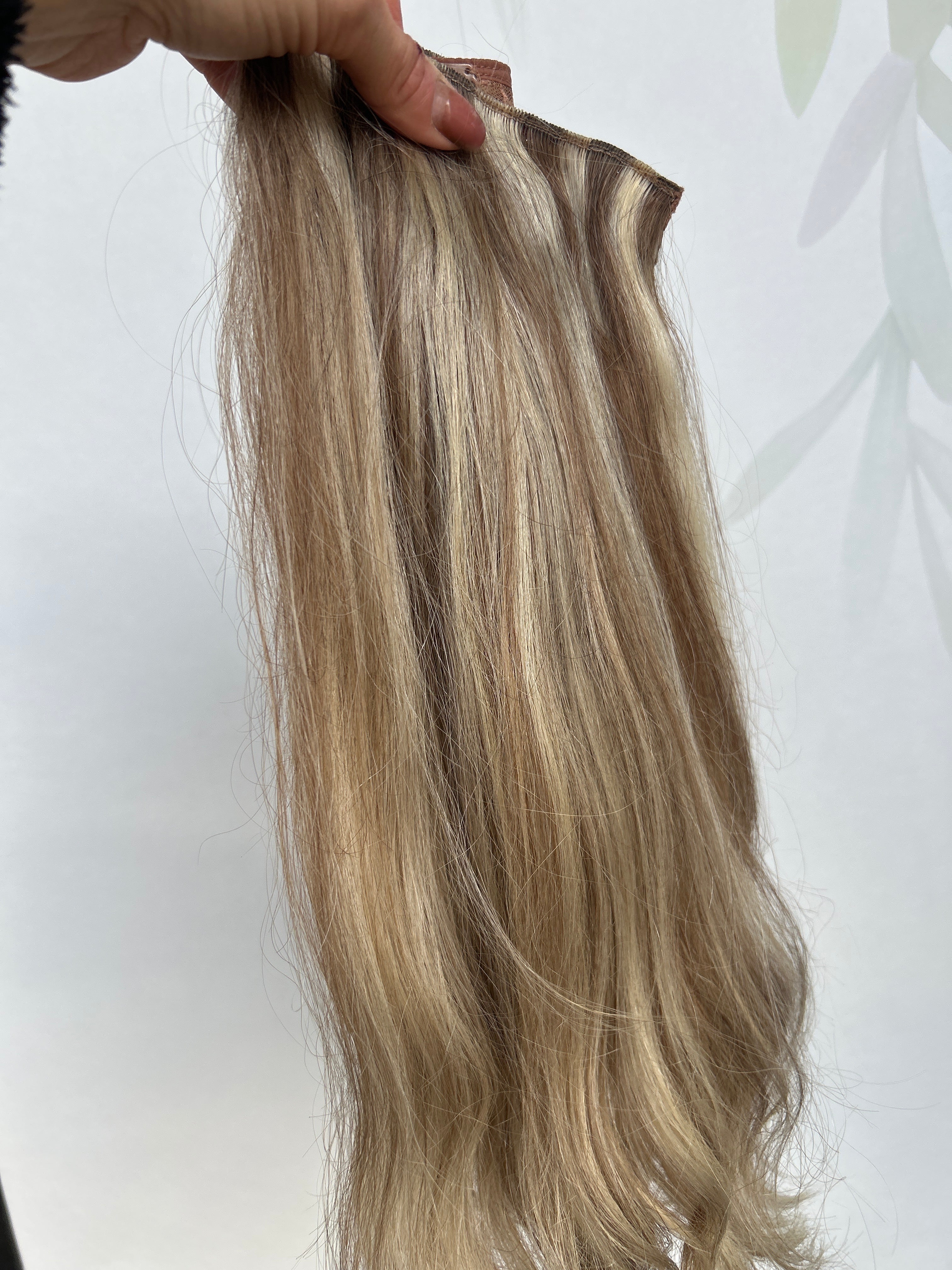 100gram 40cm dirty blond / highlight mixed clip-in extensions 100% human hair let op: deze clip-in extensions kunnen...