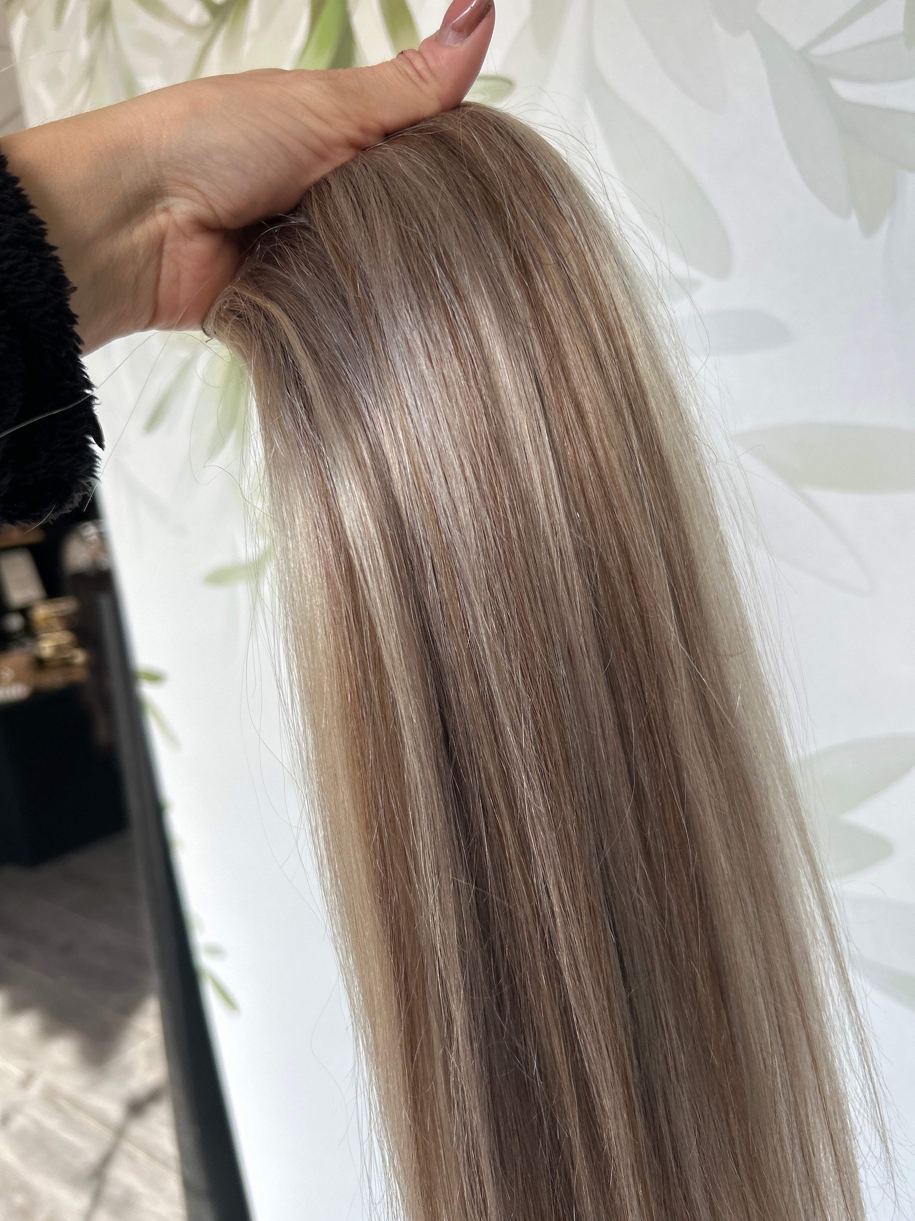 100gram 40cm ash mixed brown/blond ash clip-in extensions 100% human hair let op: deze clip-in extensions kunnen niet...