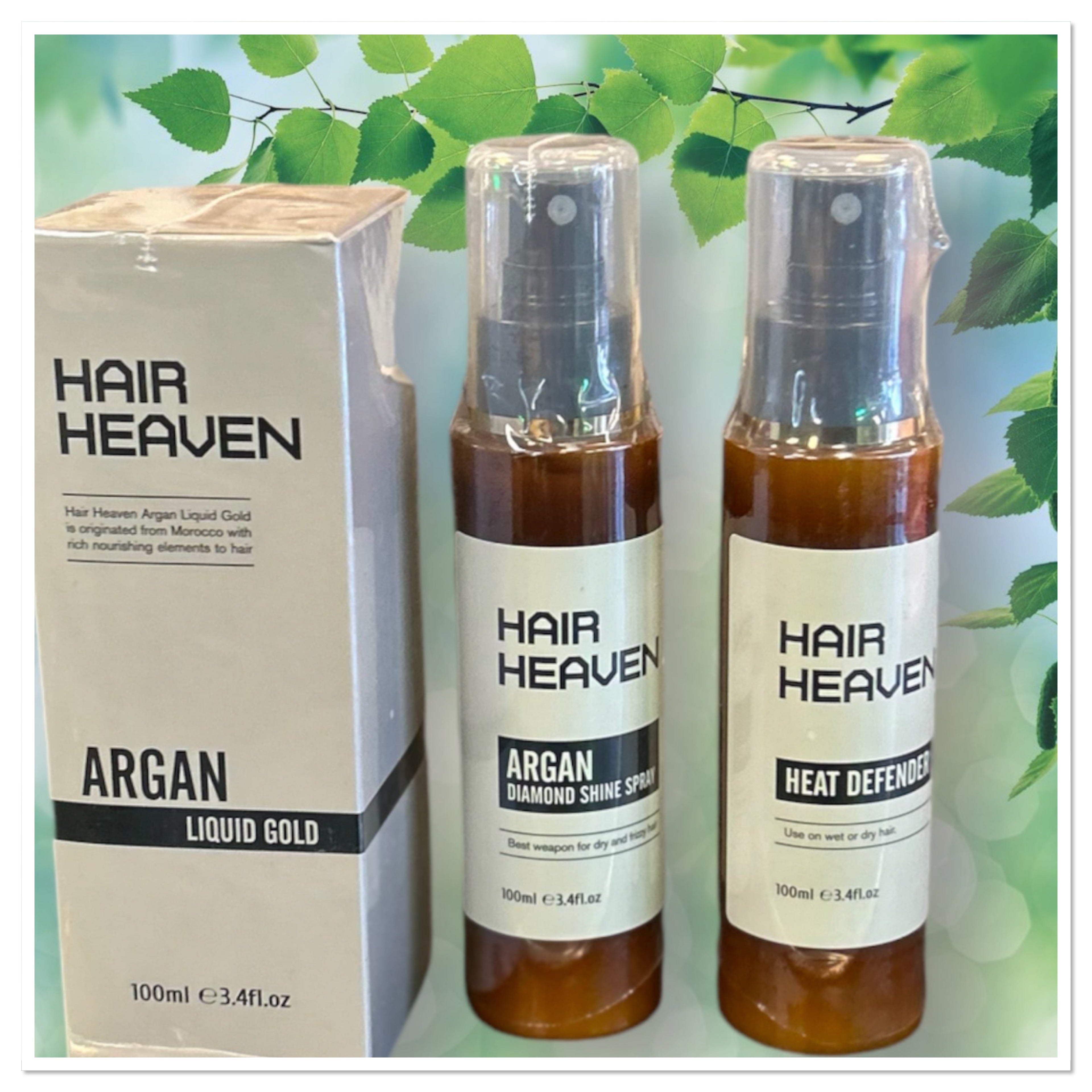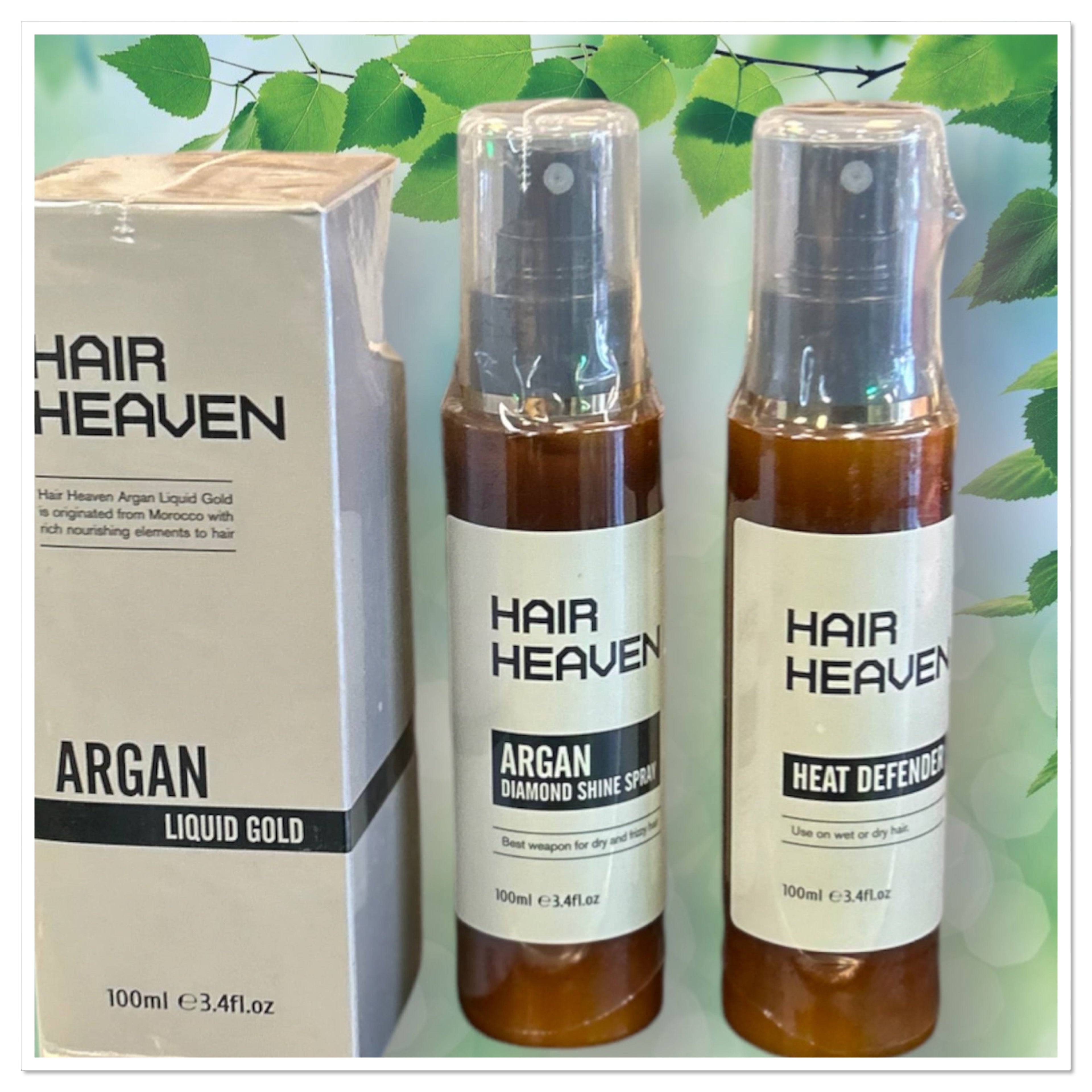 - Hair Heaven Care Kit Box – Magical Shine in December ✨Argan Gold Shampoo,Argan Gold Conditioner,Diamond Sheen Spray,Heat Defender,10Second Mask,Argan Oil,Leave in Conditioner