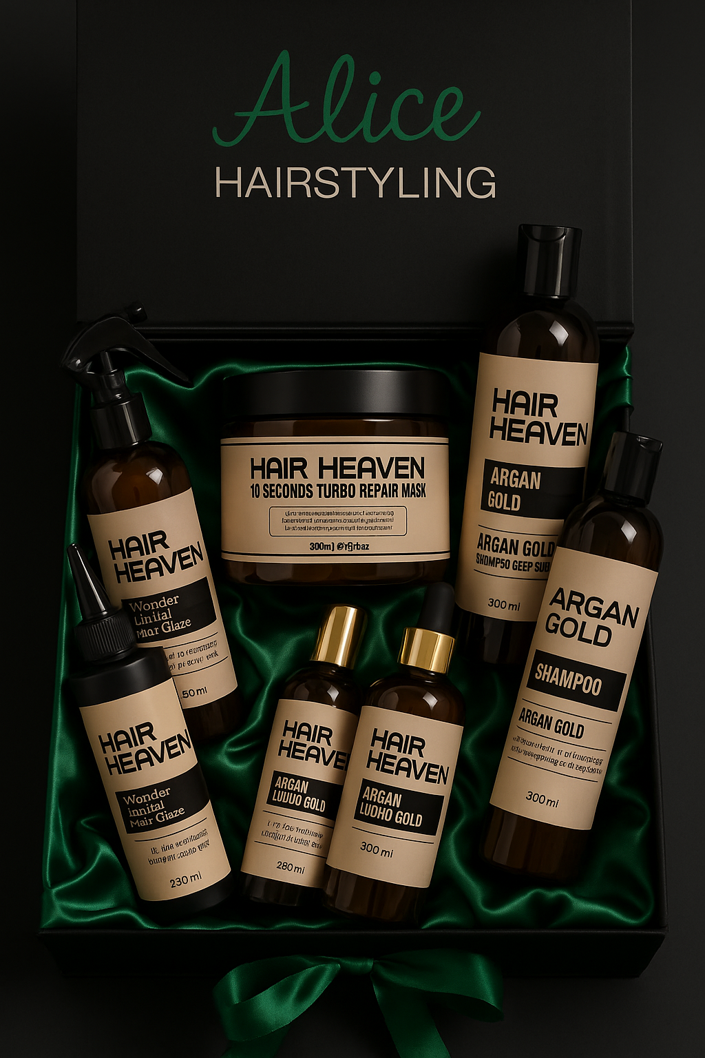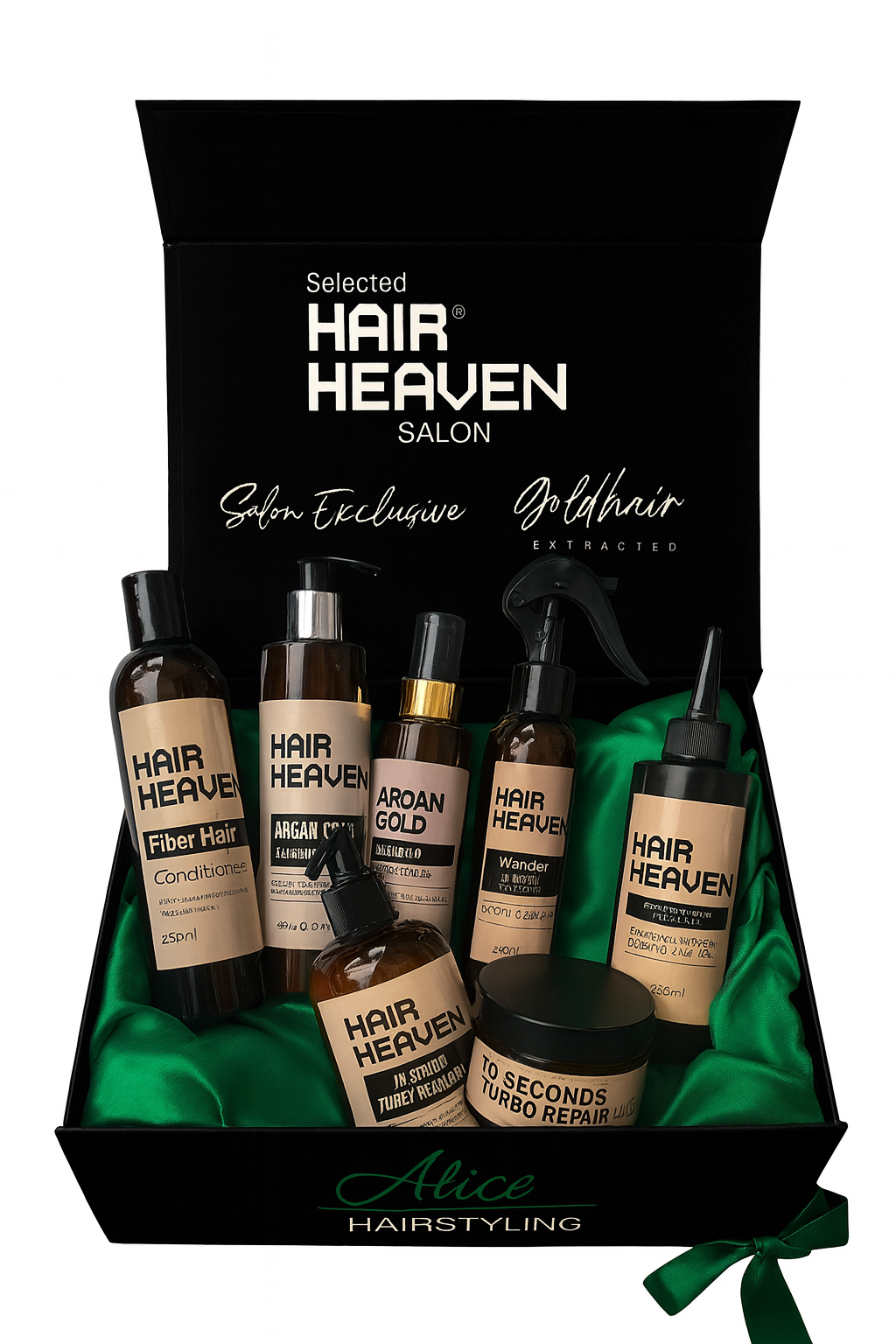 Jede Box ist in einer luxuriösen Satinschachtel verpackt und gefüllt mit hochwertigen Hair Heaven-Produkten, inspiriert von Salonqualität und veredelt mit kostbarem Arganöl für seidiges, strahlendes Haar. ✨